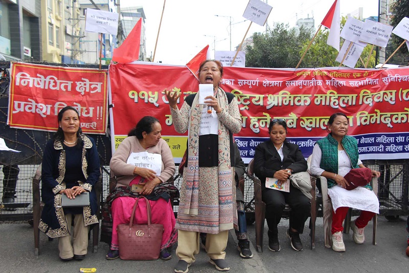 ११५औं अन्तराष्ट्रिय श्रमिक महिला दिवस (८मार्च) सफल पारौं । महिलामाथि सबै खालका विभेदको अन्त्य गरौं । भन्ने मुल नाराका साथ माईतिघरमण्डलाबाट हजारौंको संख्यामा र्याली र नाराबाजी गर्दै नयाँबानेश्वरस्थित संसद भवन पुगेर कोणसभा गरेका थिए ।