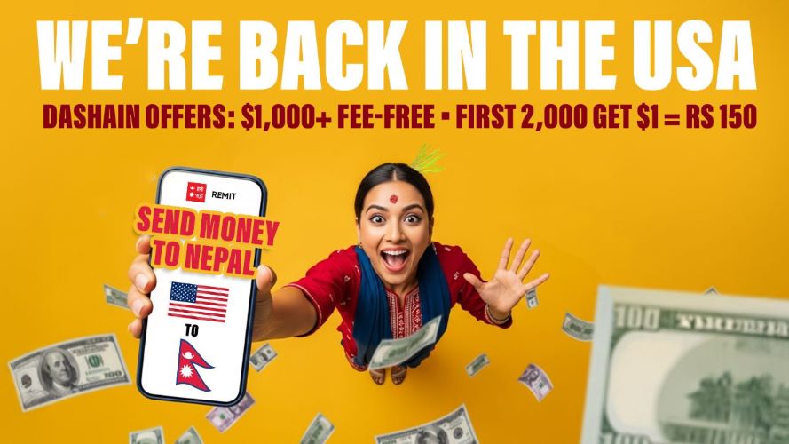 दसैंमा परिवार र आफन्तलाई आर्थिक साथ दिन चाहने पहिलो ५,००० नयाँ प्रयोगकर्ताहरूले आफ्नो पहिलो ट्रान्सफरमा १ अमेरिकी डलर बराबर रू. १५० को विशेष विनिमय दर प्राप्त गर्नेछन् ।