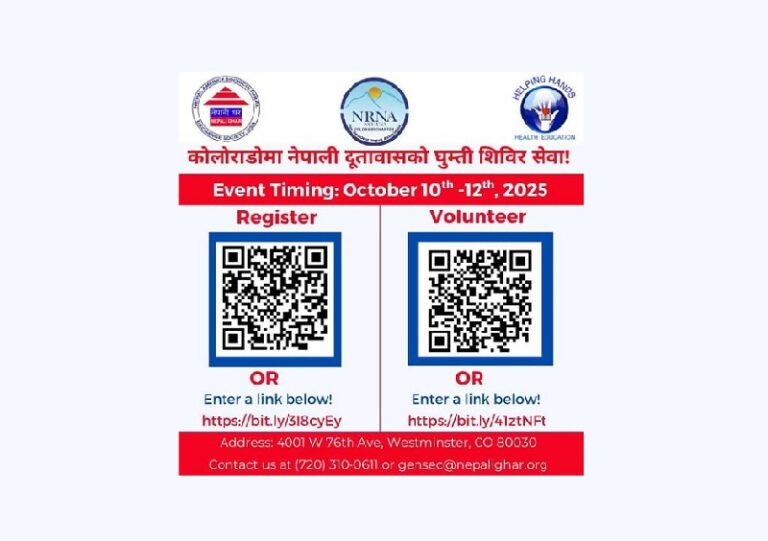 अक्टोबर १०, ११ र १२ मा कोलोराडोमा नेपाली दूतावासको घुम्ती शिविर सेवा हुने