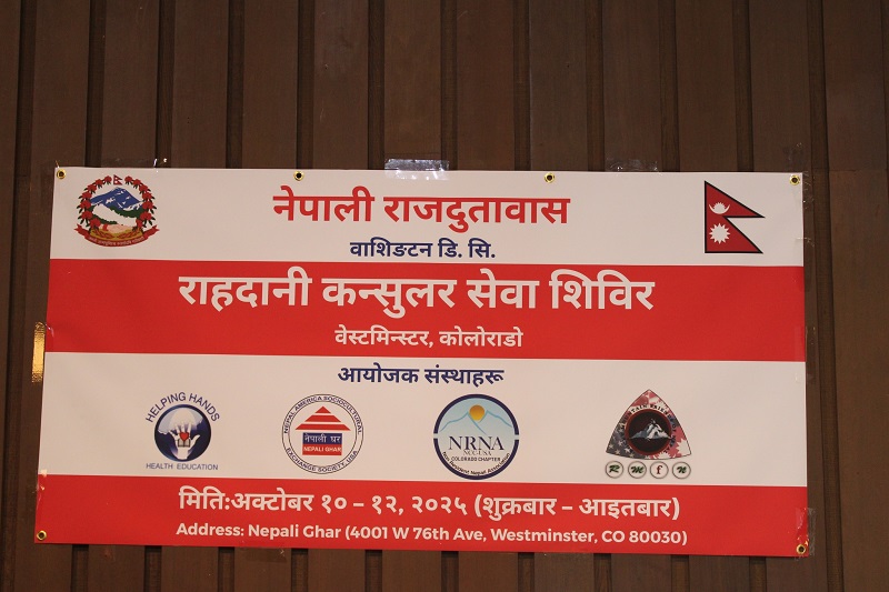 -नातिबाबु भट्ट (कोलोराडो, अमेरिका) । अमेरिकाको कोलोराडोमा अक्टोबर १० देखी १२ सम्म आयोजित राहदानी सेवा शिविर भब्यताका साथ सम्पन्न भएको छ ।