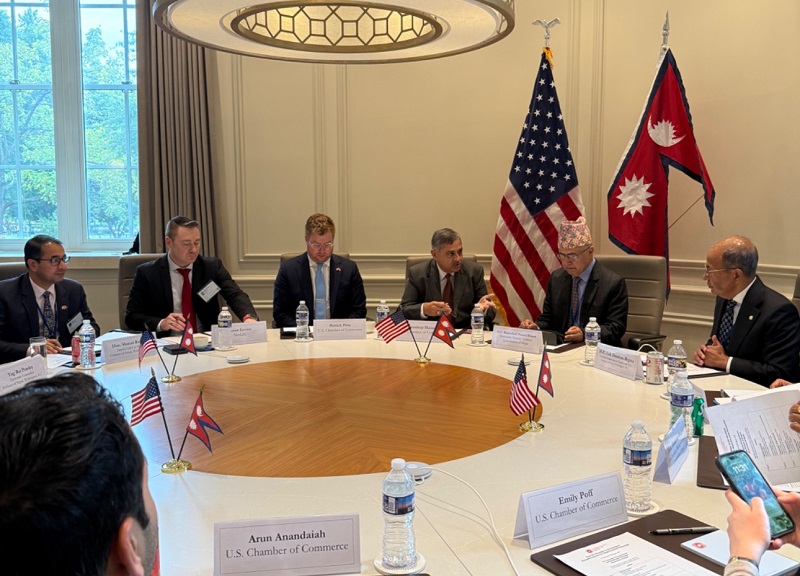 अमेरिका । विश्व बैंक तथा अन्तरराष्ट्रिय मुद्रा कोषको वार्षिक बैठकमा भाग लिन अमेरिका आउनुभएका अर्थमन्त्री रामेश्वरप्रसाद खनालले अमेरिका चेम्बर अफ कमर्सले आयोजना गरेको बिजनेस डायलगलाई सम्बोधन गर्नुभएको छ ।