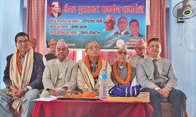 यसैगरी एक लाख एक हजार १११ रुपियाँ राशिको भैरव वाङ्मय पुरस्कारबाट वरिष्ठ चित्र कलाकार हरिप्रसाद शर्मा सम्मानित हुनुभयो । भैरव प्रतिभा पुरस्कार विराटनगर मोरङका विवश पोखरेललाई प्रदान गरियो । उहाँलाई ५१ हजार १११ रुपियाँसहित पुरस्कृत गरिएको हो ।