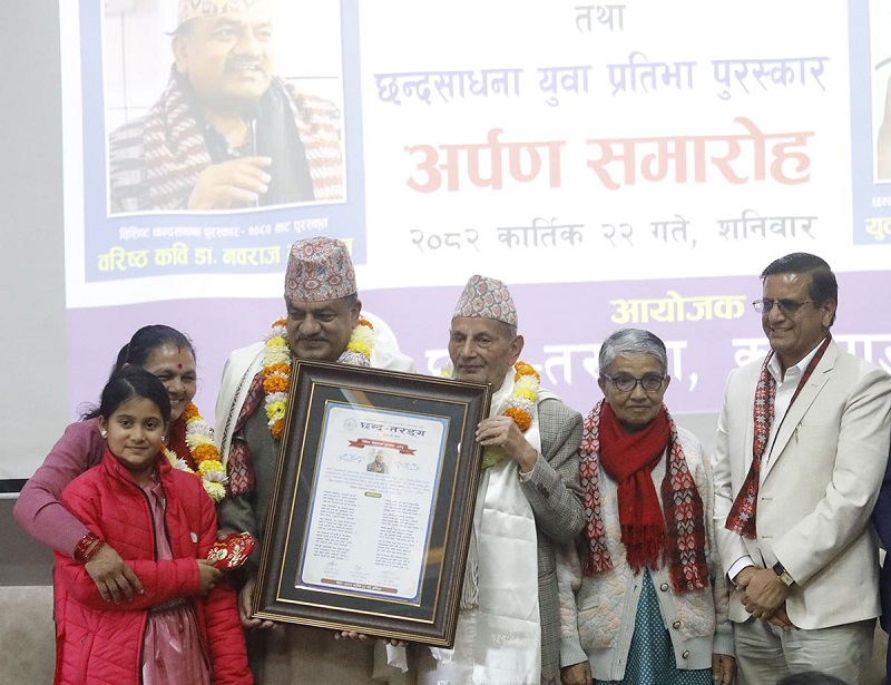छन्द साधना पुरस्कारबाट नवराज लम्साल र पुरुषोत्तम आचार्य पुरस्कृत