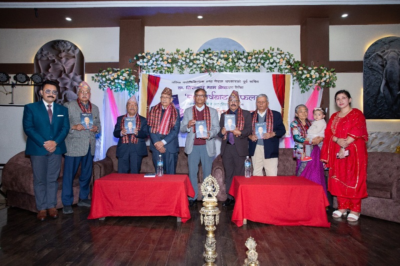 कार्यक्रममा अतिथिहरु खाद्य प्रविधि विशेषज्ञ, पूर्वाञ्चल विश्वविद्यालयका पूर्व उपकूलपति प्रा. जगतबहादुर केसी, नेपाल सरकारका पूर्व स्वास्थ्य सचिव रामचन्द्र मान सिँह, पुस्तकका सम्पादक लक्ष्मण अधिकारीले शुभकामना मन्तब्य राख्नुभएको हो । लेखक डा। श्रेष्ठका छोरा सन्तोषमान श्रेष्ठले स्वागत गर्नुभएको समारोहमा पुस्तक लोकर्पण प्रमुख अतिथि तथा अतिथिहरुले गर्नुभएको हो ।