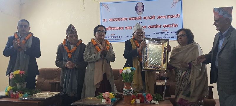 नेपाल । नेपाली अर्थ जगतका विद्वान व्यक्तित्व डा. यादवप्रसाद पन्तको १०१औँ जन्मजयन्तीको अवसर पारेर डा. यादवप्रसाद पन्त अनुसन्धान तथा विकास प्रतिष्ठानले विभिन्न क्षेत्रका चार साधकहरूलाई अभिनन्दन एवम् सम्मानित गरेको छ ।