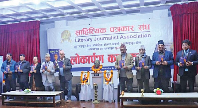 नेपाल । साहित्यिक पत्रकार संघले ‘जुद्धबहादुर श्रेष्ठ औद्योगिक क्षेत्रका अग्रणी’ र ‘पूर्णबहादुर श्रेष्ठ ‘व्यथित’ का ‘गद्य रचनाहरू’ तथा ‘नसा नसामा’ गीतको लोकार्पण गरेको छ ।