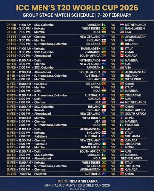 एक समूहमा पाँच टिम रहने छन् । हरेक समूहका शीर्ष दुई टोली सुपर–८ मा पुग्ने छन् । सुपर–८ मा दुई समूह हुने छन् । हरेक समूहका शीर्ष दुई टोली सेमिफाइनल खेल्ने छन् । त्यसपछि फागुन २४ गते विश्वकप ट्रफी उचाल्ने टिमको निर्णय हुने छ ।
