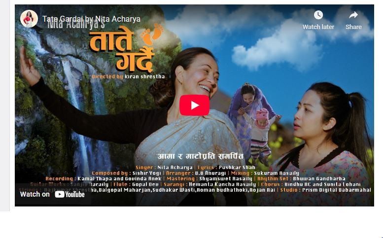 डायस्पोरामा बसेर नेपाली गीत–सङ्गीतलाइ माया गर्ने गायिका नीता आचार्यको नयाँ गीत काठमाडौँमा एक समारोहबिच सार्वजनिक भएको हो ।
