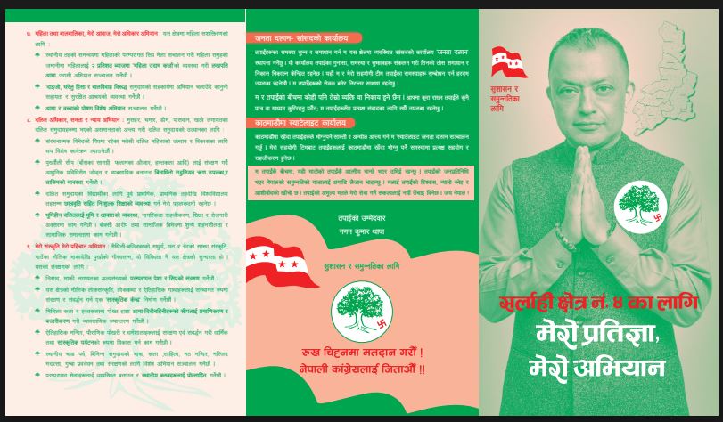 गगन थापाद्वारा सर्लाही क्षेत्र नं. ४ का लागि आफ्नो चुनावी प्रतिज्ञा पत्र सार्वजनिक