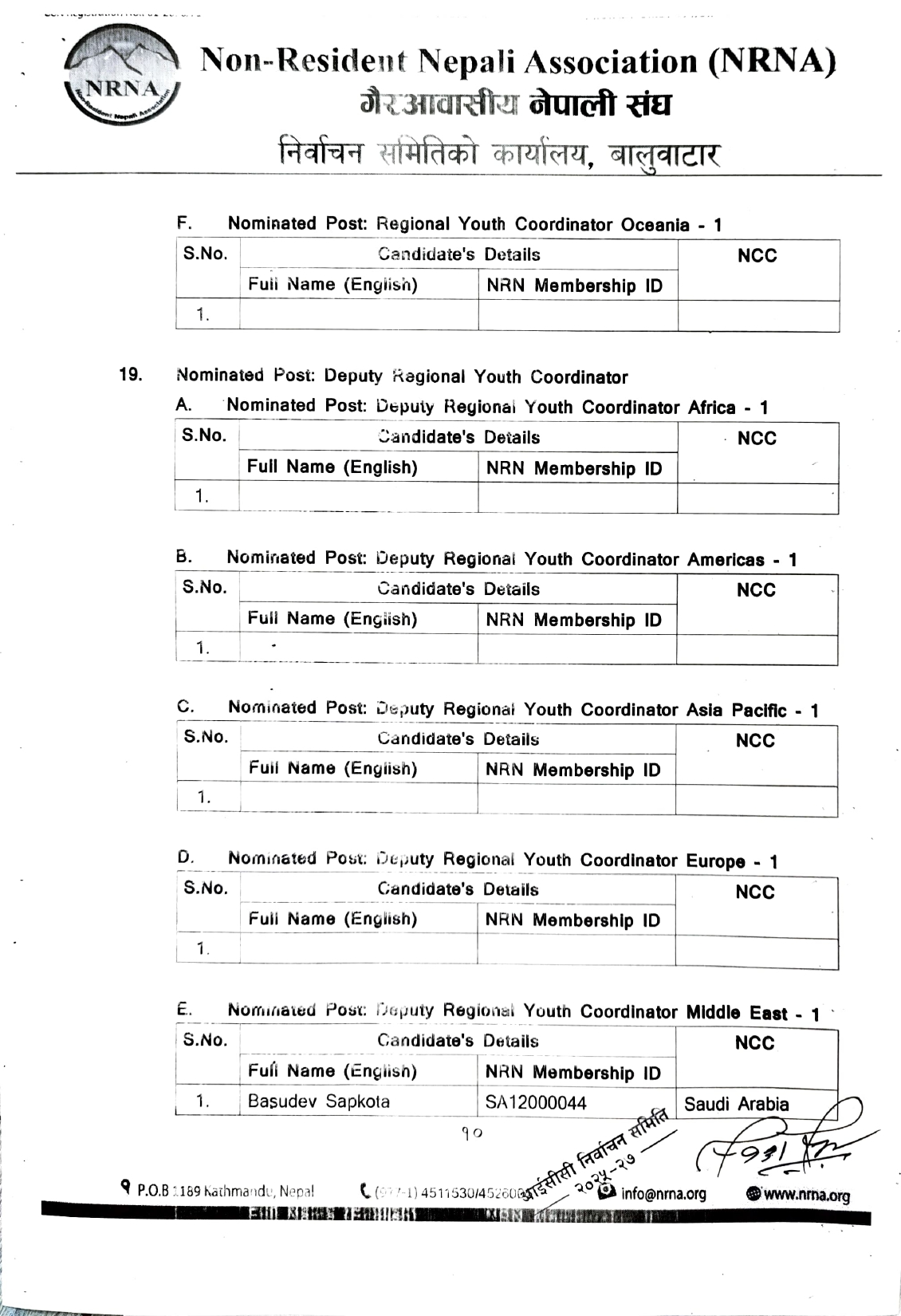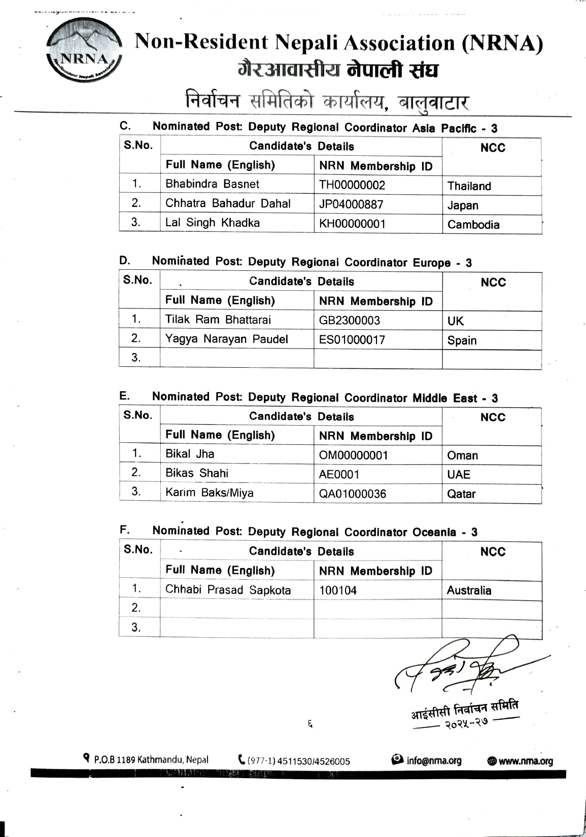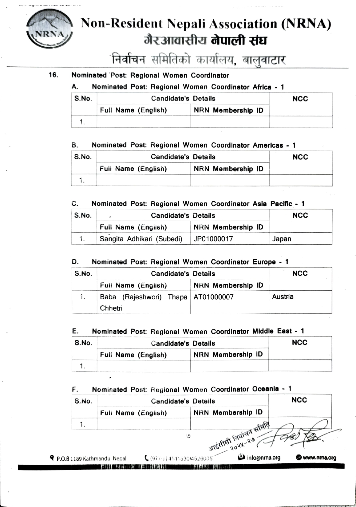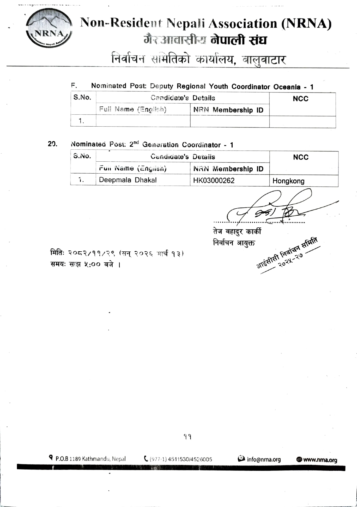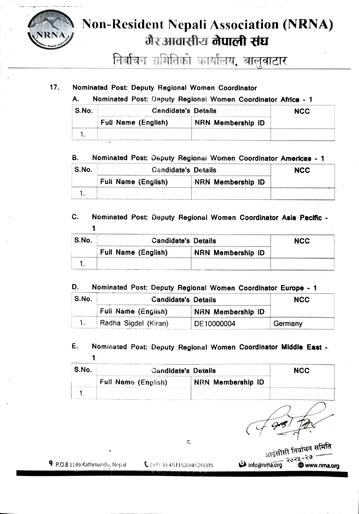 अमेरिका । गैरआवासीय नेपाली संघ (एनआरएनए) को अध्यक्षका प्रत्याशी रोविन शेरचनले यसअघि दर्ता गराएको अध्यक्ष पदको उम्मेदवारी फिर्ता लिएका छन् ।