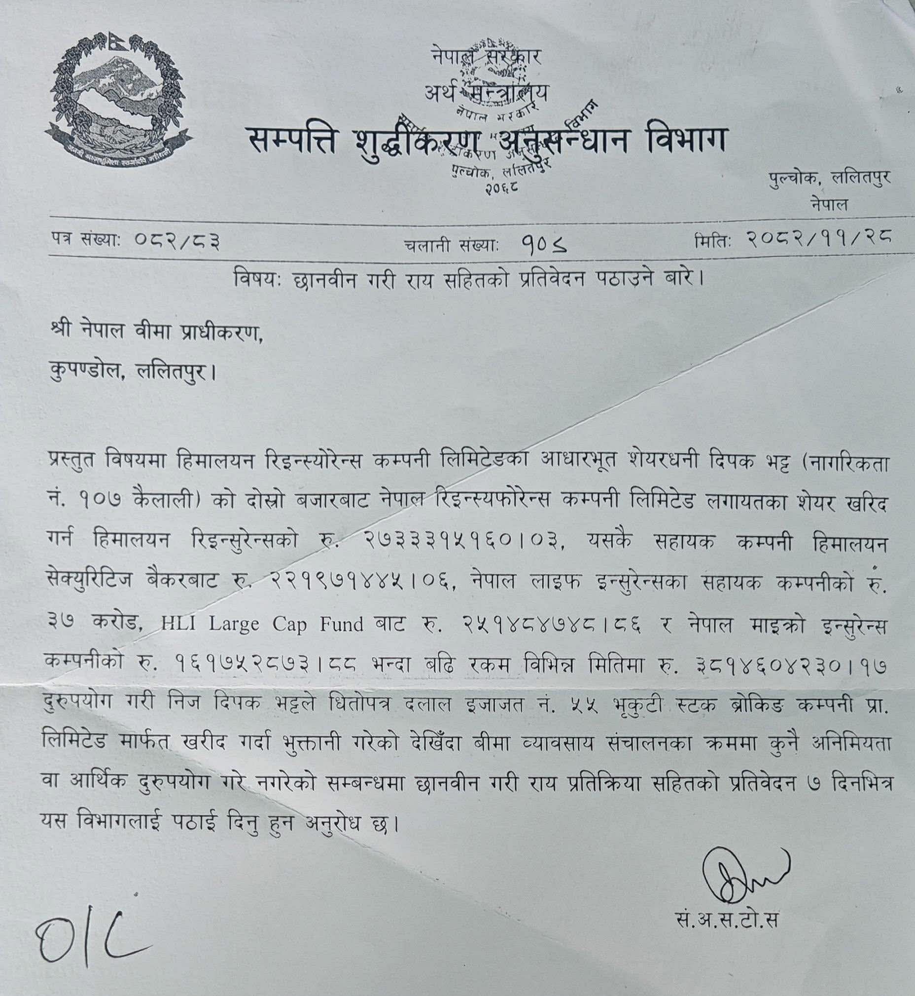 स्रोतका अनुसार उनीमाथि सम्पत्ति शुद्धीकरणसम्बन्धी आरोपमा अनुसन्धान भइरहेको सन्दर्भमा उक्त कदम चालिएको हो ।