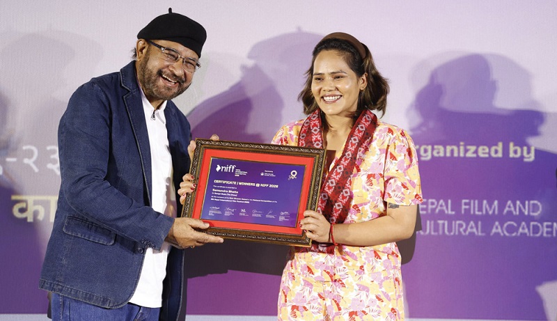 नेपाल । नवौँ संस्करणको नेपाल अन्तर्राष्ट्रिय चलचित्र महोत्सव (निफ) मा सर्वोत्कृष्ट अन्तर्राष्ट्रिय चलचित्रको अवार्ड दीपक रौनियार निर्देशित ‘राजागंज’ः पूजा सर’ ले जितेको छ । काठमाडौँको सुन्धारास्थित सिभिल मलमा नेपाल ललितकला प्रज्ञा–प्रतिष्ठानका कुलपति नारदमणि हार्तम्छालीको प्रमुख आतिथ्यमा सोमबार भएको समापन कार्यक्रममा उक्त चलचित्रलाई ट्रफी र एक हजार पाँच सय अमेरिकी डलर पुरस्कारले सम्मान गरिएको छ ।