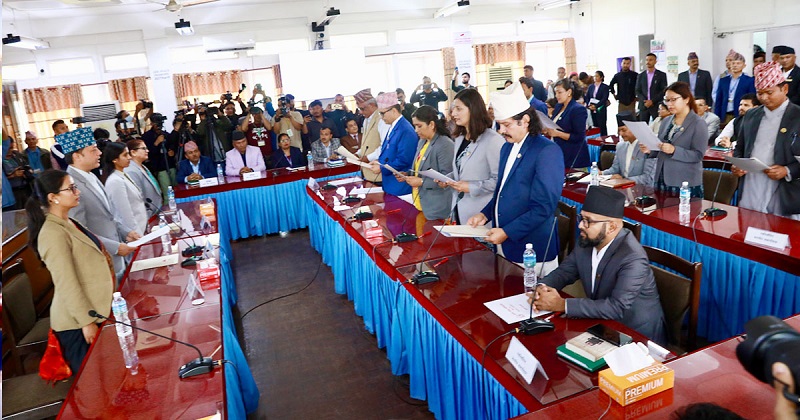 सिंहदरबारस्थित सङ्घीय संसद सचिवालयमा आयोजित कार्यक्रममा प्रतिनिधिसभाका सभामुख डोलप्रसाद (डिपी) अर्यालसमक्ष उनीहरूले शपथ लिएका हुन्। उनीहरूले शुक्रबारनै पदबहाली पनि गरेका छन्।