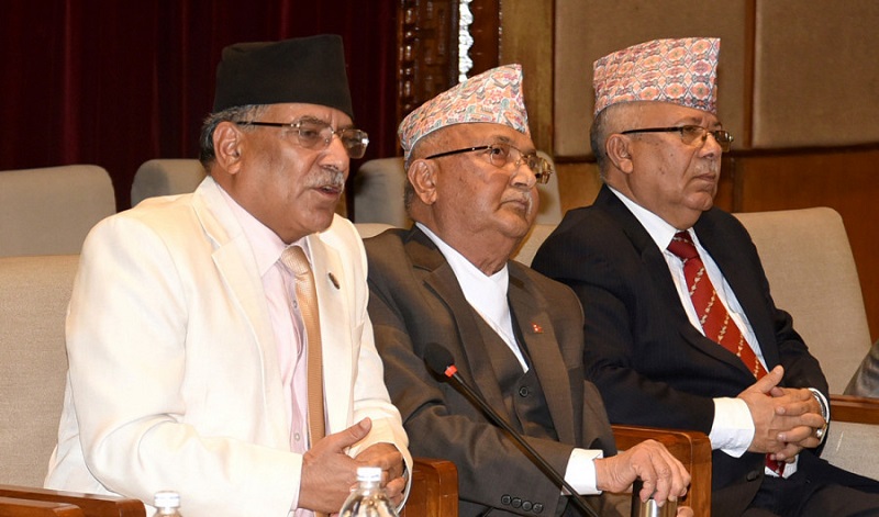 नेपाल । सोमबार प्रधानमन्त्री पुष्पकमल दाहाल प्रचण्ड, नेकपा एमालेका अध्यक्ष केपी शर्मा ओली र नेकपा एसका अध्यक्ष माधवकुमार नेपालबीच लामो भेटवार्ता भएको छ ।