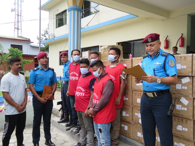 भन्सार छलिगरिएको सामान सहित प्रहरीले बस चालक दोलखा भिमेश्वर नगरपालिका वडा नंबर २ बस्ने ३७ वर्षको सलाम मोक्तान, सह चालक उदयपुर कटारी नगरपालिका वडा नंबर– ११ बस्ने २७ वर्षको प्रबिन्द्र राना, नुवाकोट दुप्चेश्वर गाउँपालिका वडा नंबर ७ बस्ने ३९ वर्षको ईन्द्र बहादुर दर्जी, सोही ठाउँका ३० वर्षिय सन्तोष भुसाल र धनकुटा बेलारा नगरपालिका वडा नंबर १६ बस्ने २९ वर्षिय राजकुमार हिमाङलाई पक्राउ गरिएको छ ।
