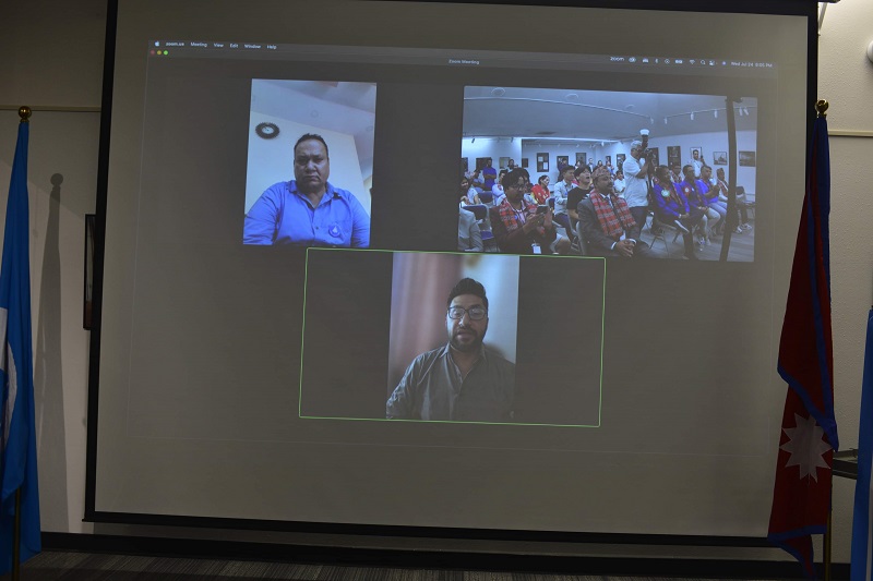 उक्त भेलालाई पार्टीका उपसभापति एवम् पूर्व मन्त्री डीपी अर्यालले नेपालबाट जूममार्फत सम्बोधन गरेका थिए । त्यसैगरी, पार्टीका कावा महामन्त्री तथा संगठन विभाग प्रमुख कबिन्द्र बुर्लाकोटी, पूर्वमन्त्री डा. तोसिमा कार्की, पार्टीका गैरआवासीय उपप्रमुख डा. प्रणय राणाले पनि जूममार्फत आतिथ्यता ग्रहण गरेका थिए ।
