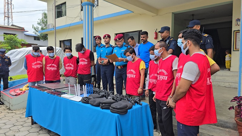 प्रहरीले भारतको पटना थाना आलमगंजका २८ वर्षीय नवनित कुमार, झारखण्डका २७ वर्षीय शाहरुख खान, बिहारका २९ वर्षीय कुन्दन कुमार, नैनिताल उत्तराखण्डका २६ वर्षीय आशिष कब्डौला, राँची झारखण्डका ३४ वर्षीय विशाल कक्कडलाई पक्राउ गरेको हो ।