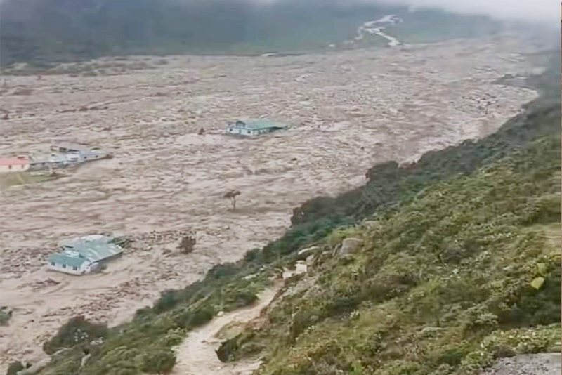 नेपाल । सोलुखुम्बुको खुम्बु पासाङल्हामु गाउँपालिका–५, थामेमा शुक्रबार दिउँसो बाढीले जनजीवन प्रभावित भएको छ ।